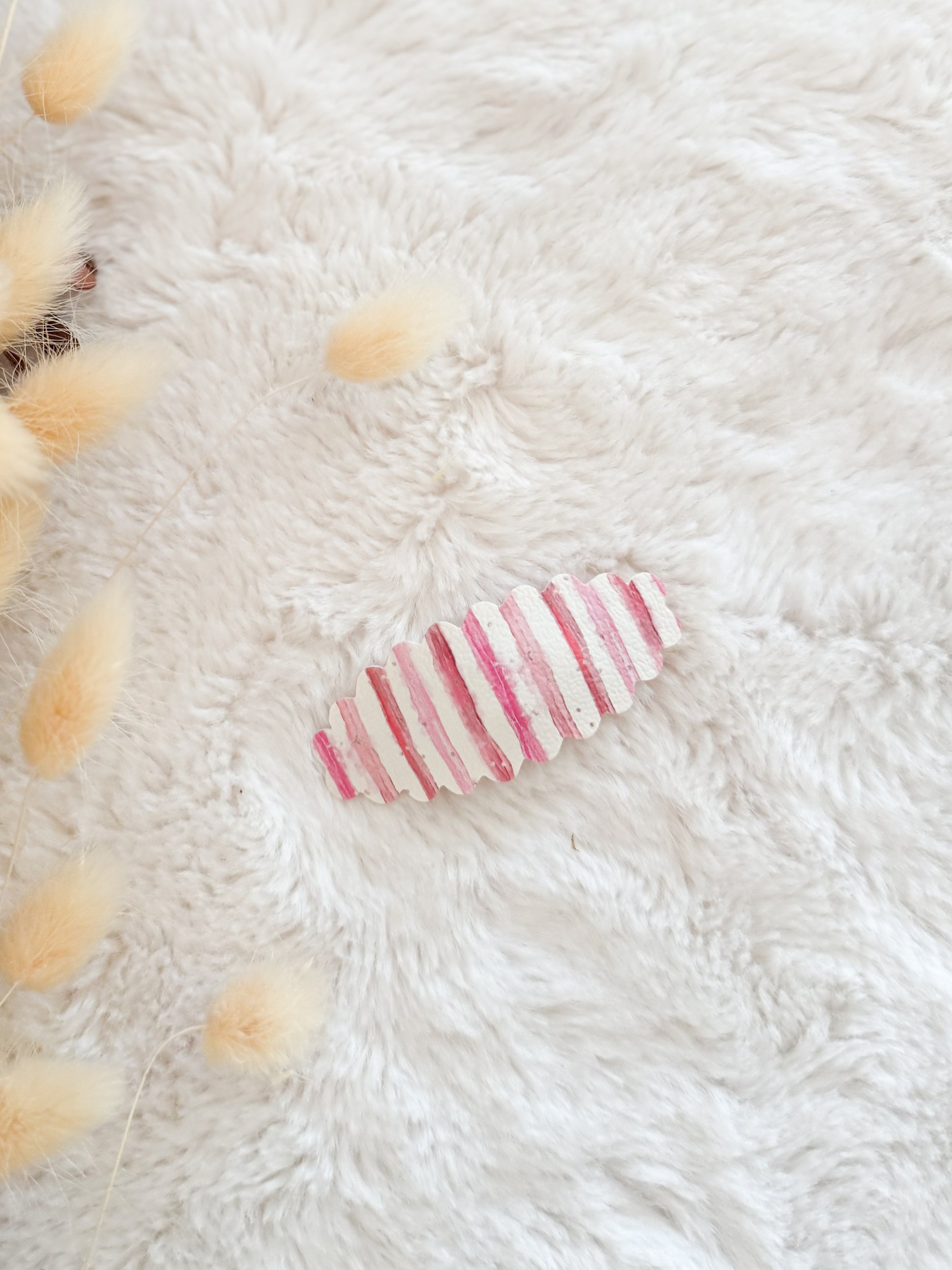 Magnifique barrette à l'unité clip clap avec de la fausse cuirette que nous avons réutilisé parmis nos retailles. Sur une pince de 5cm