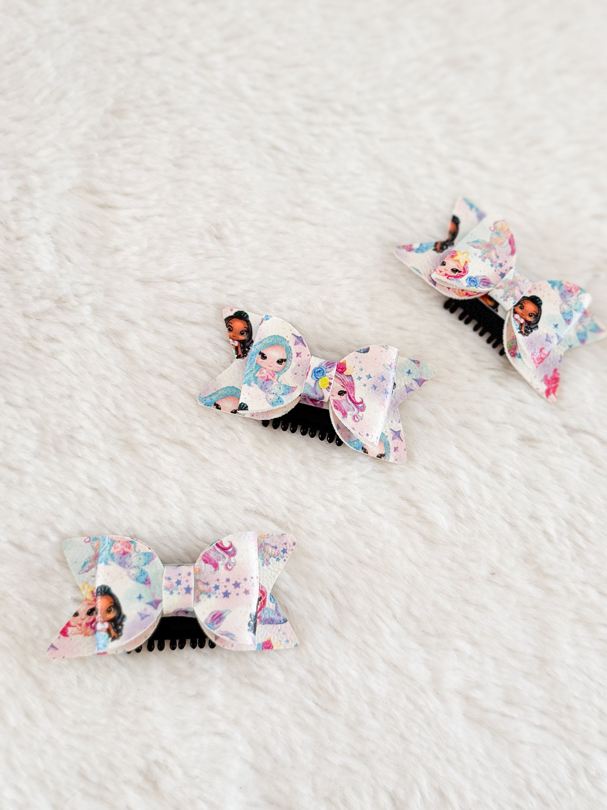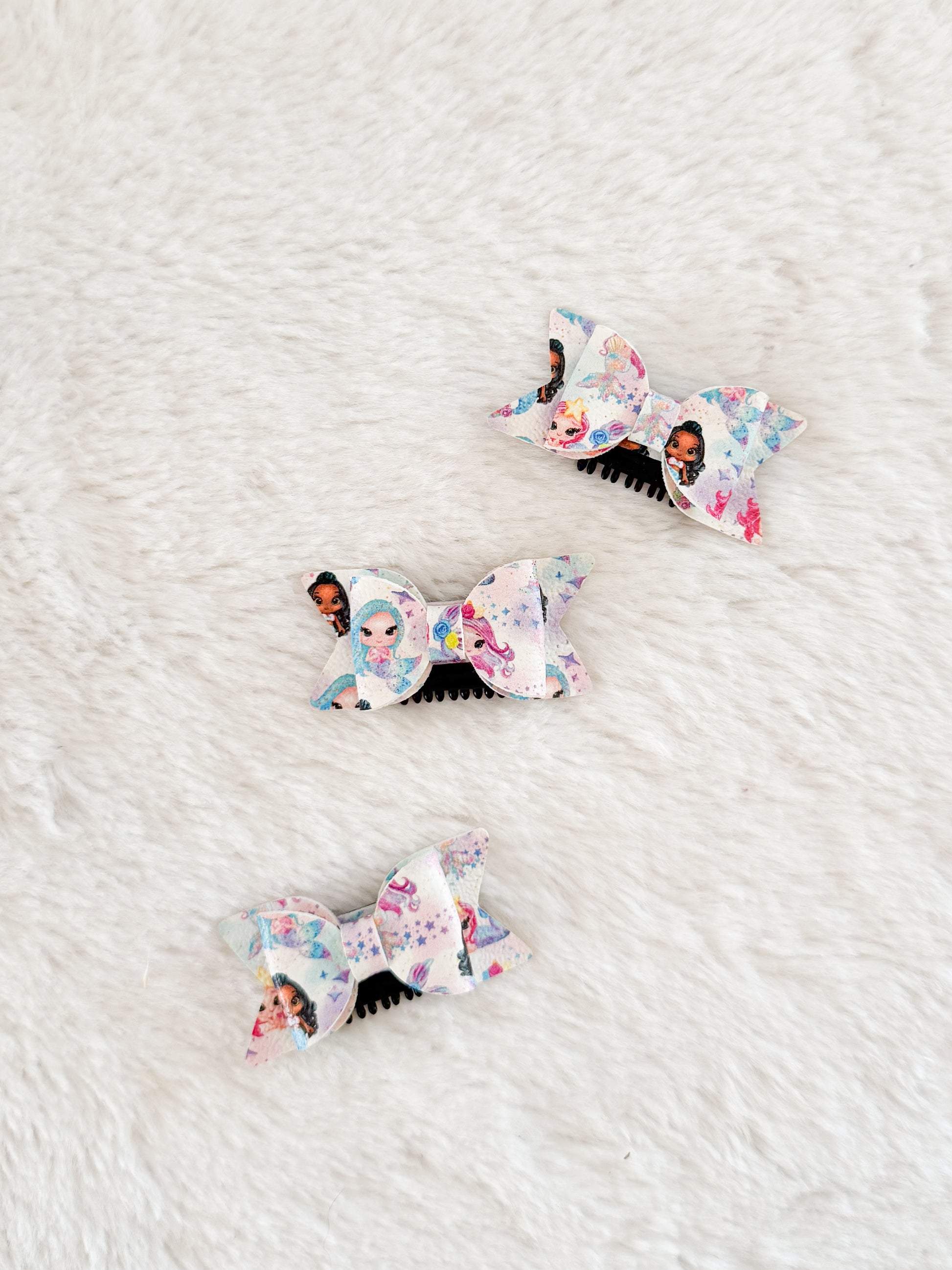 Boucles à cheveux Rosie en fausse cuirette sur pince à cheveux fin.