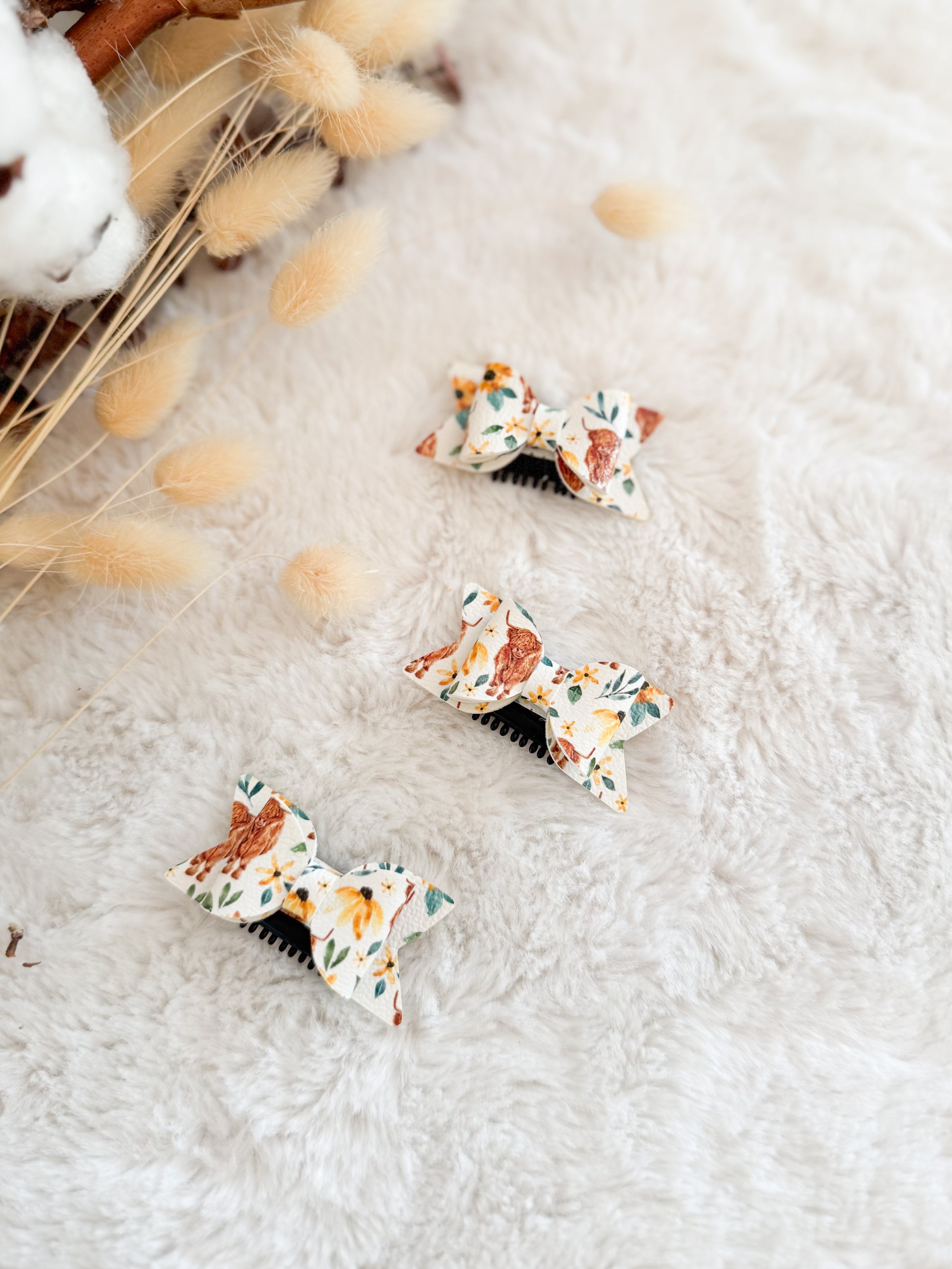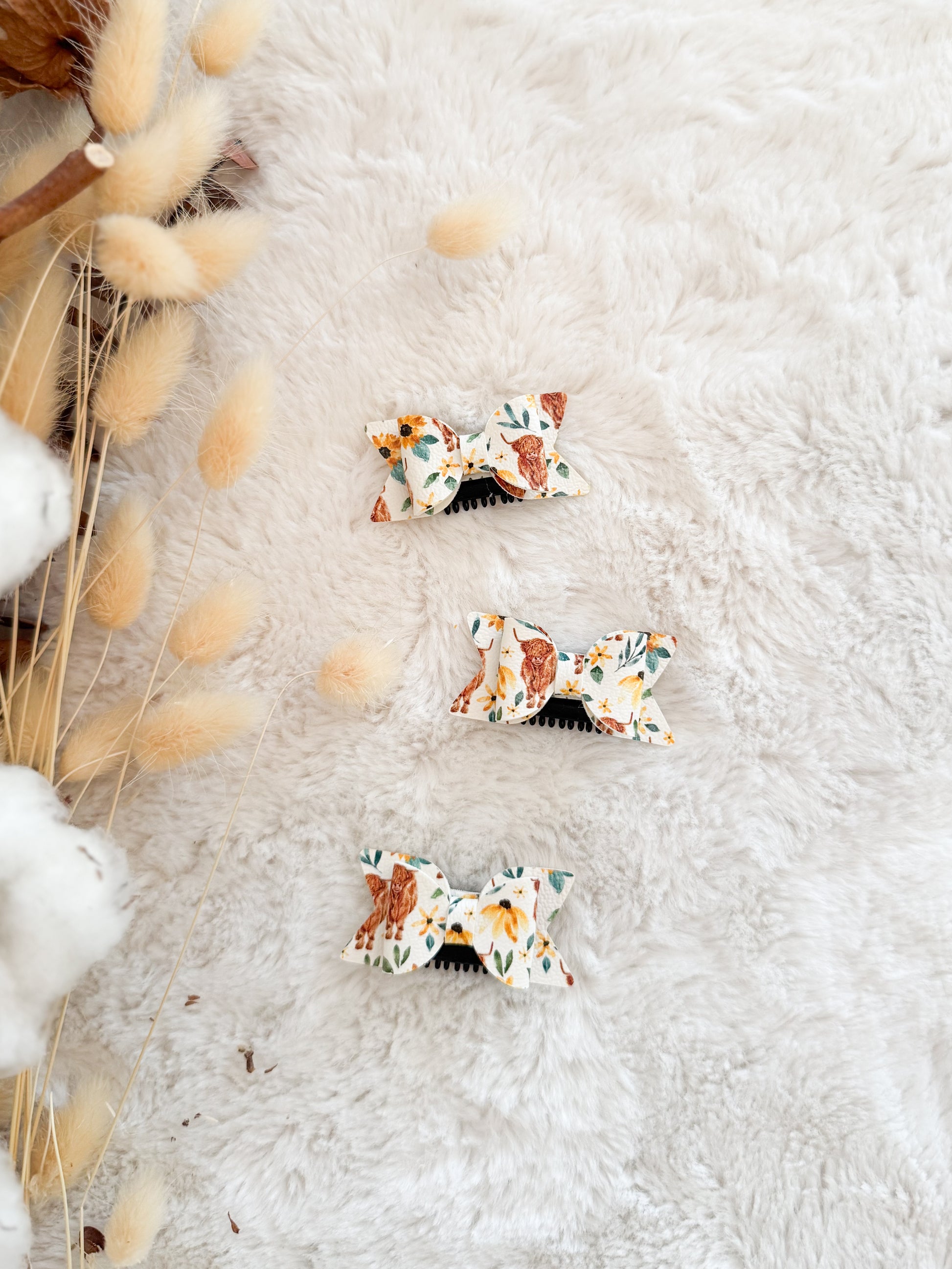 Boucles à cheveux Rosie en fausse cuirette sur pince à cheveux fin.
