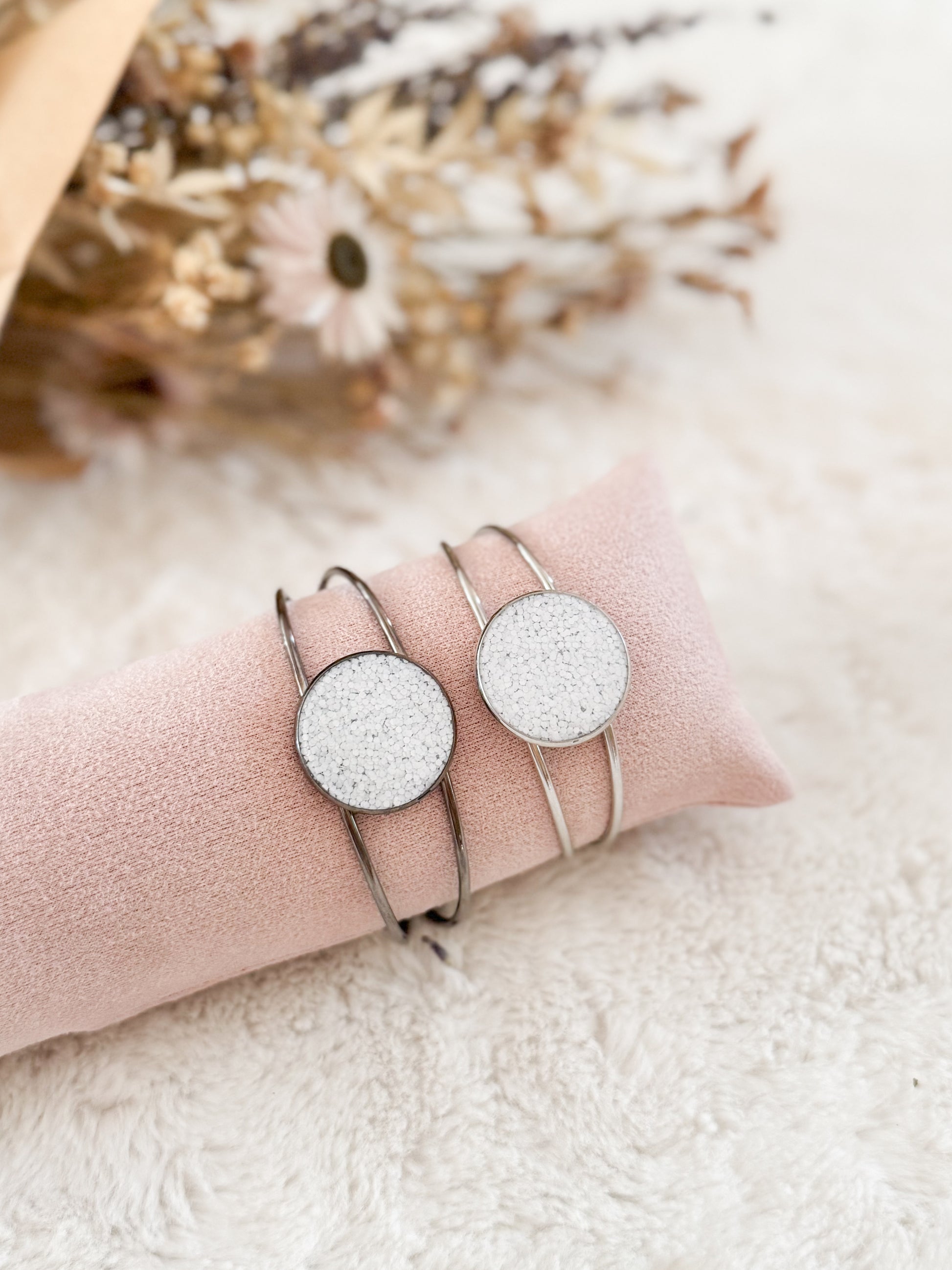 Bracelet de cuirette recyclé Blanc Scintillant